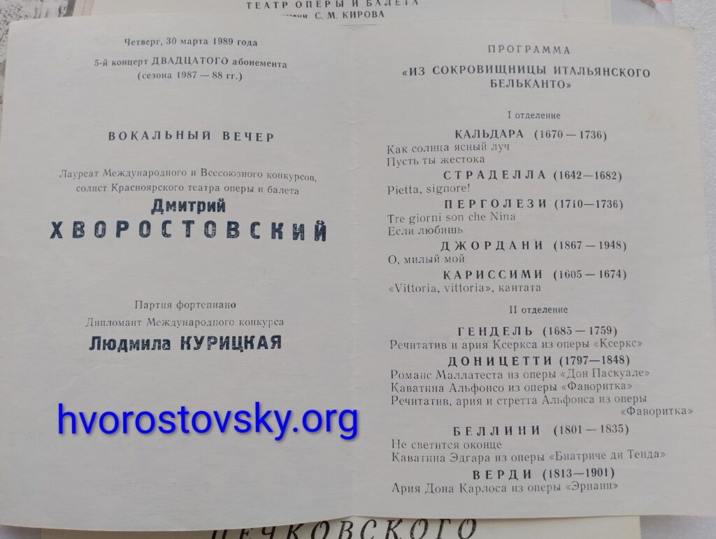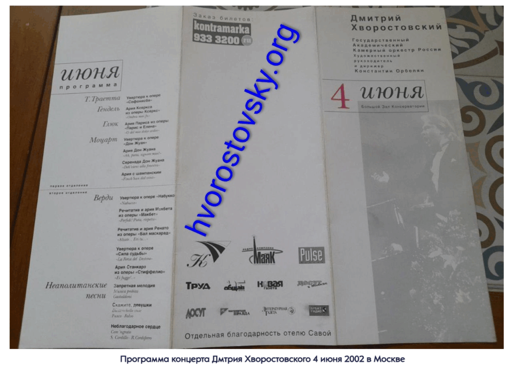 23 января 2006 Появились программы выступлений, с которыми Дмитрий Хворостовский накануне выступал в городах США.